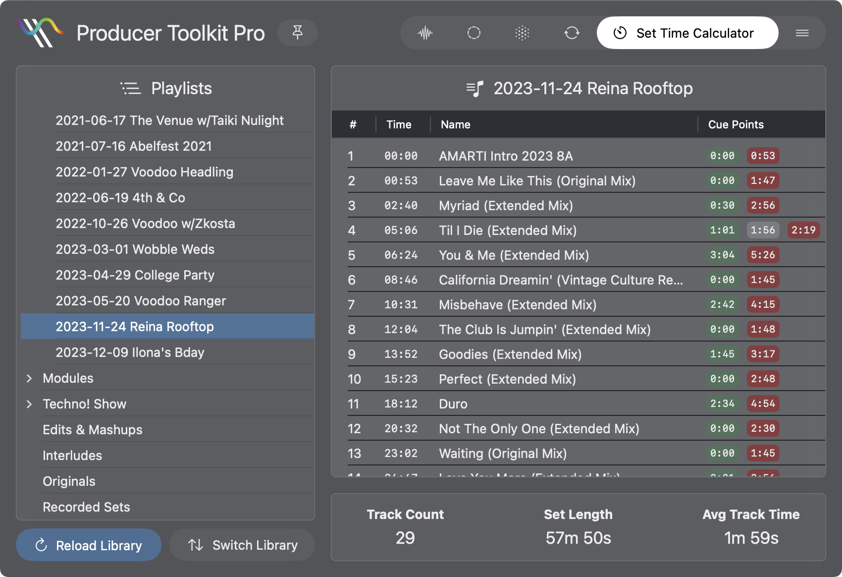 • Use Set Time Calculator to quickly estimate the runtime of your playlists based on track cue points
